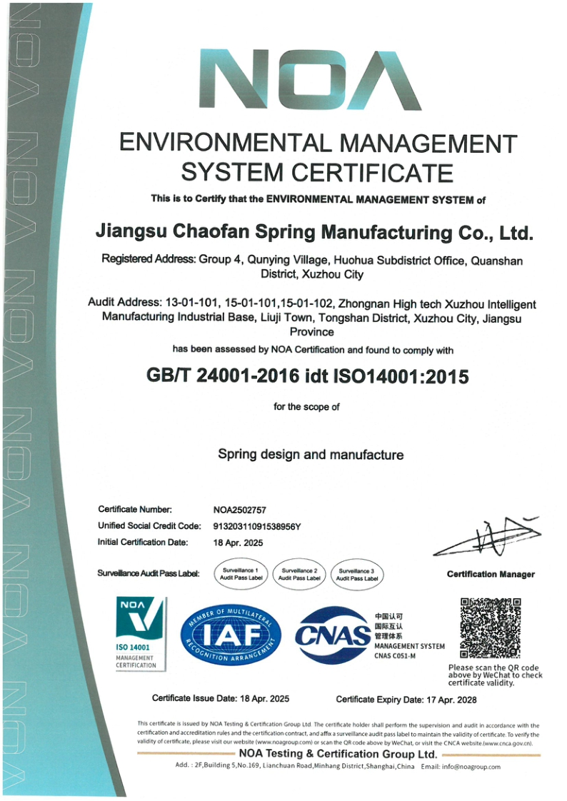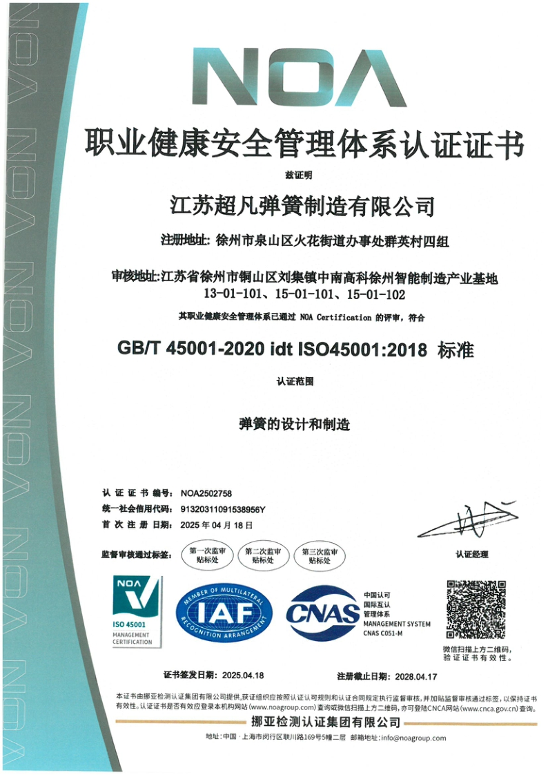 江苏超凡弹簧制造有限公司成立于 2014 年,是专注于高精度弹簧研发、制造与销售的专业化企业,深耕汽车、矿山机械、中高压开关、电器、工程机械、液压阀门、石油设备、医疗器械等领域,为全球客户提供定制化弹簧解决方案。